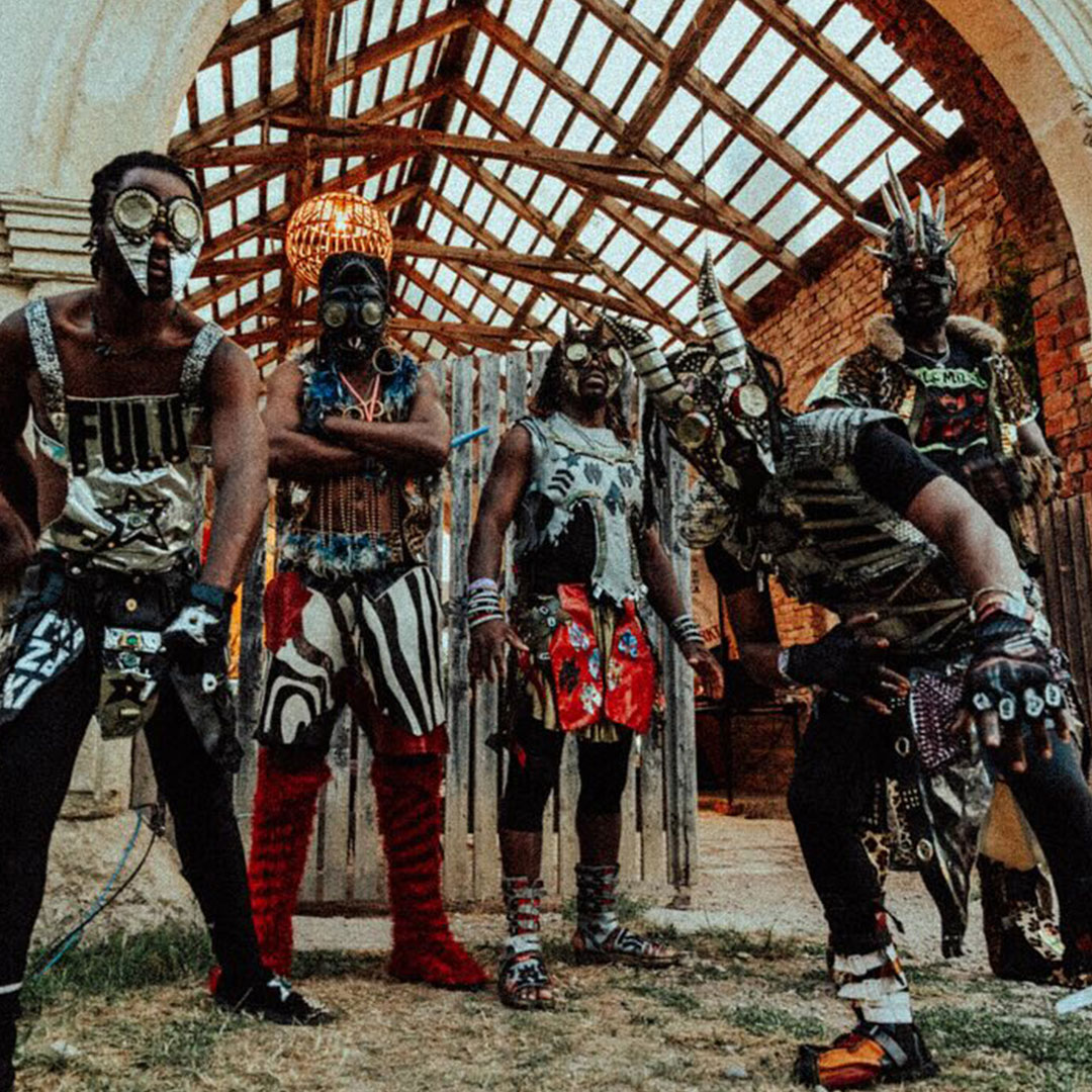 FULU MIZIKI « le son des poubelles » en lingala, est une formation née dans le quartier de Ngwaka, véritable labyrinthe de rues dans Kinshasa (RDC). Ils se définissent comme une assemblée Eco-Friendly-Afro-Futuristic-Punk arrivant tout droit d’un futur où les humains se sont réconciliés avec la terre et avec eux-mêmes. Ils produisent une nouvelle musique, qu’ils nomment Twerkanda, une sorte d’afro disco-house/post soukous explosive, composée uniquement à partir d’instruments faits de matériaux qu’ils ont eux-mêmes recyclés et assemblés.