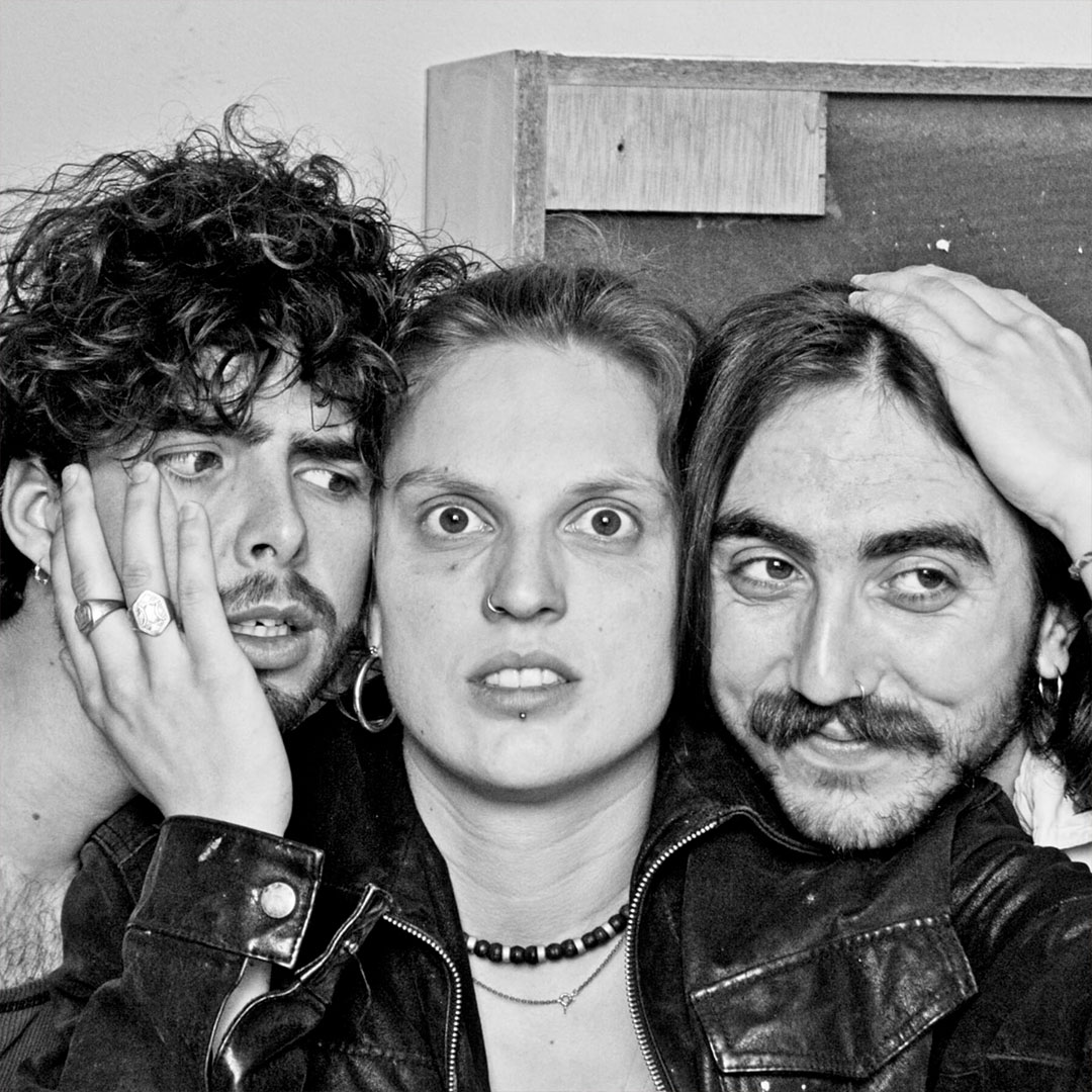 Ce trio fatal prône une tartine propulsive, un élan punk, du dynamisme à l’état brut. Leur son est bercé par l’électro-clash française, la techno des free-party et toutes sortes de grands noms du punk & rock plus ou moins indés des années 2000. Les cris de la Reine te rappelleront tes soirées les plus éméchées. Derrière la chanteuse, un.e batteur.euse tente de s’échapper à grands coups de kick dans ta gueule, barricadé.e dans les synthés farceurs de Tem. Heureusement, tu seras sauvé.e de toute cette pagaille par la guitare tant chatoyante que poussiéreuse de Mimi le Grand, guitariste aux mains d’argent.